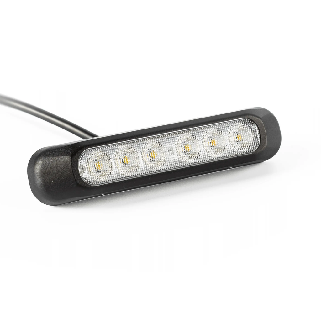 This compact strip lamp combines a white front position light and indicator functions in one unit. Popular for tractors, agri and plant use. A tough lamp with the highest waterproof and ingress protection.