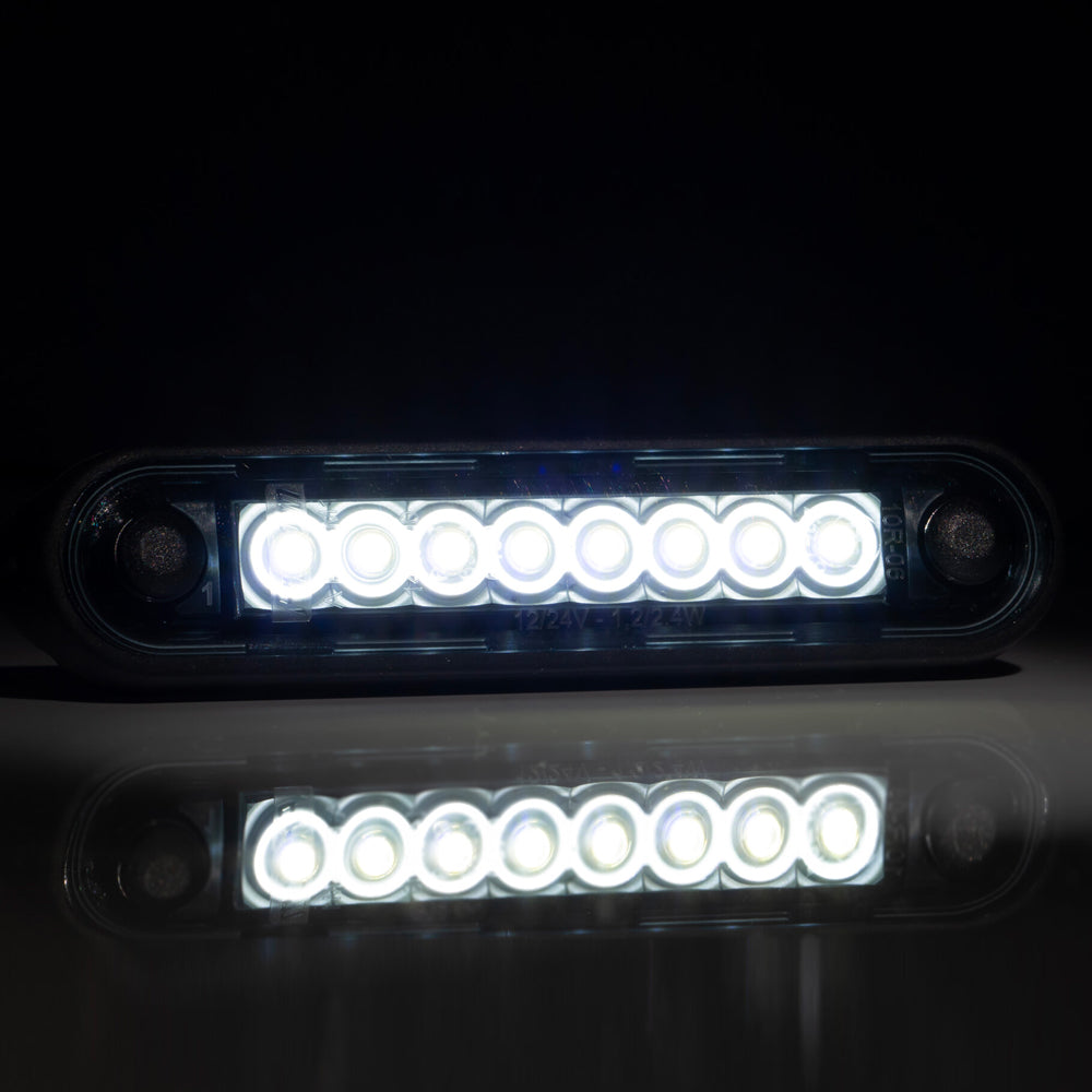 Fristom's most popular LED Marker Light for truck bars and bull bars is now available in a longer version with 8 x Premium LEDs and 2 x Rubber Gaskets for mounting on a Flat Surface or on Bull Bars, Side Bars or any other curved surface. These lamps are manufactured in Poland and are built to last much longer than cheaper alternatives. These longer marker lamps are ideal for truck perimeter kits.