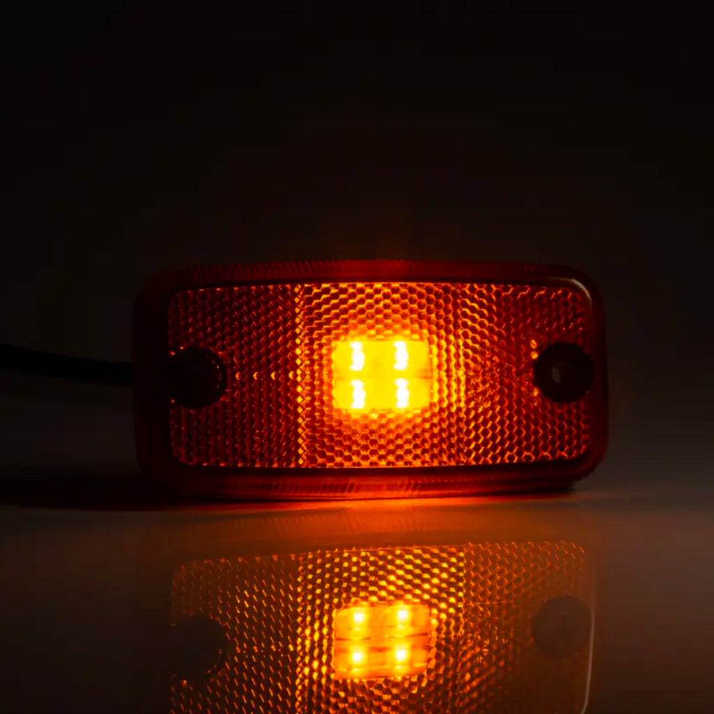The Fristom FT-019 Amber LED Marker Light is a popular replacement LED light for rectangular trailer lights. It has a large reflector surrounding the 4 LEDs in the centre of the light and a drop down mounting bracket for quick and easy fitting along the sides of trailers.