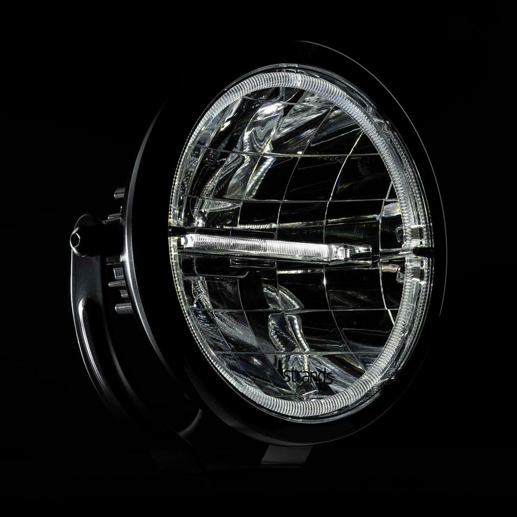 The most popular spot light for trucks - The Strands Ambassador - is now available in an exclusive Dark Edition with a black lens and a dark reflector. This lamp has the iconic Strands position light around the edges of the lamp with a strip dividing the centre. This position light can be set to amber or white. This lamp also comes with two trim rings for the face of the lamp: 1 x Silver and 1 x Black Trim.