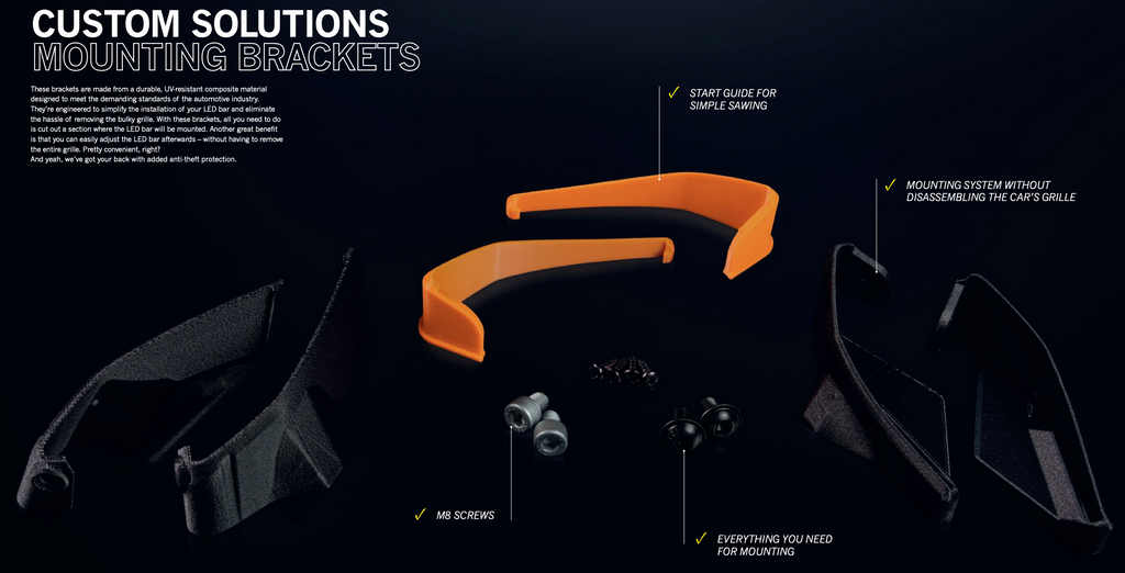 Model-specific mounting brackets:Robust brackets are engineered for a precise fit, ensuring secure and stable mounting without complex modifications.