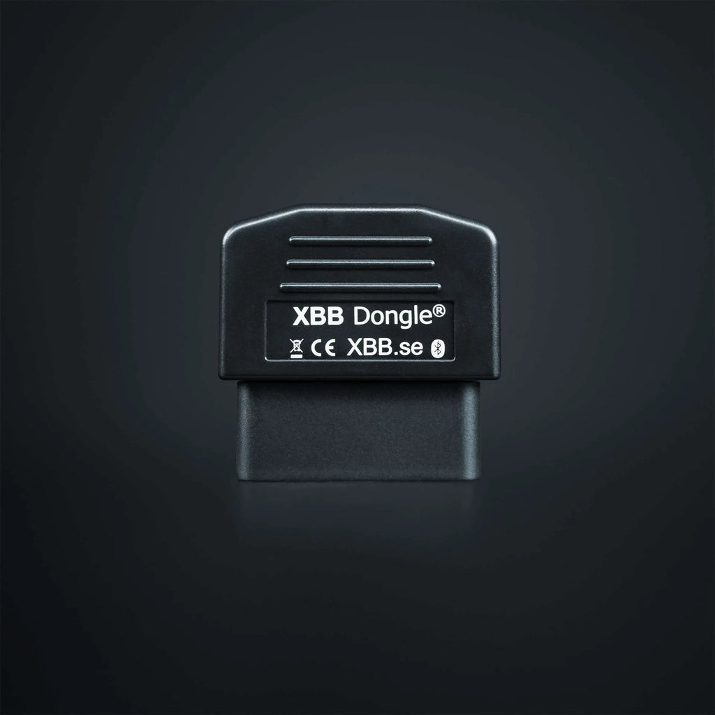 The XBB Dongle connects to the vehicle’s OBD2 port and communicates wirelessly over Bluetooth.
