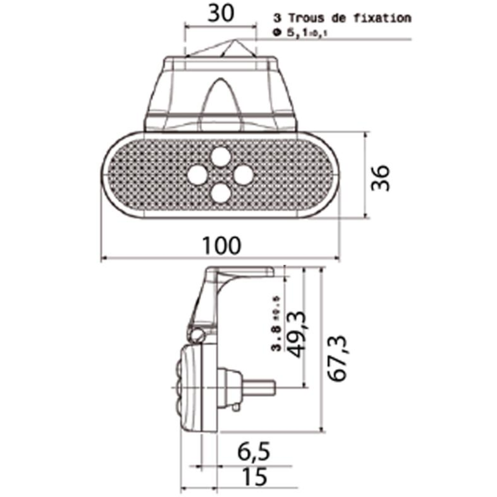 Vignal 104250 Amber LED marker light with quik connector and bracket. ADR Approved and made in France.